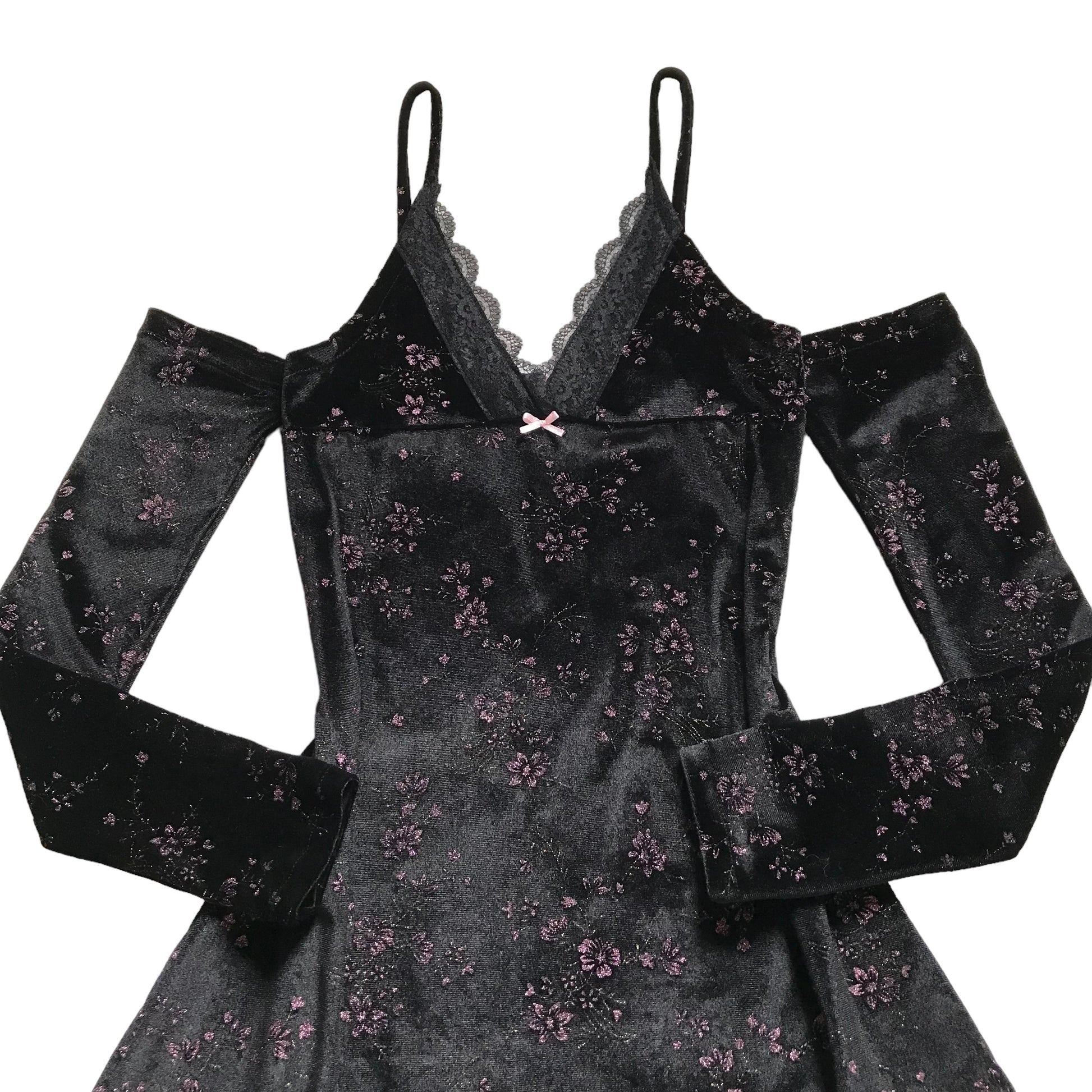 Vestido Débora Manga Larga Negro Flores Brillos (pre order)